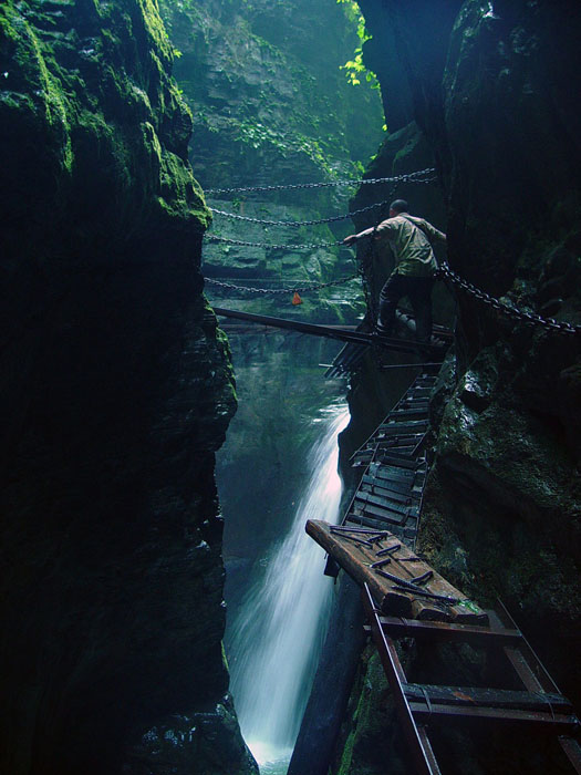 坐龍峽擁有中國第一條特種游道。所有游道均建于峽谷深處,依山取勢,既經(jīng)細心雕琢聽卻又渾然天成。粗樸的板栗木棧道,可以讓你零距離的親近那一潭碧幽、聽聞山泉叮咚;精巧的跳墩,可以讓你媳戲流泉、觸感溪瀑;原質(zhì)的石坎道,讓你不得不調(diào)動全部的身心能量悉心攀援、感悟峽谷;有驚無險的鐵梯,讓你伴著腳下轟鳴的溪水,在驚怵中體味一份快慰。 出口出的土家山寨,保留了古樸獨特的生活習(xí)俗。一塊臘肉就一口醇香的“苞谷燒”會讓你洗去所有的疲憊,在輕松中憨厚的主人向你講述過去強人出沒的故事