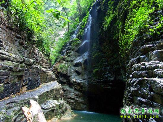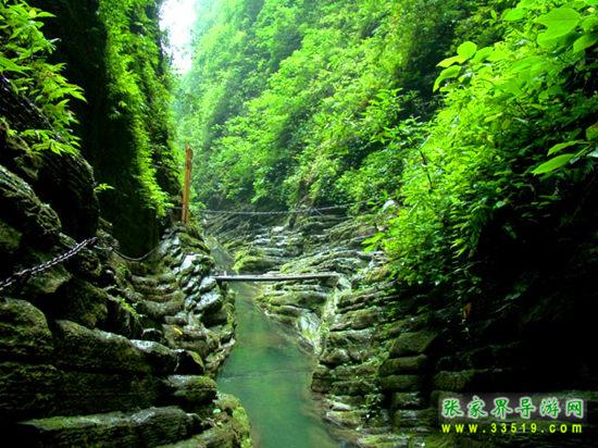 坐龍峽,經(jīng)由300萬年大自然的風(fēng)吹、水蝕而成,一直隱逸于湘西茫茫十萬群山之中。它長約3500米,最大高差達300余米;寬處不足丈余,窄處僅容一人通過;谷內(nèi)絕壁縱疊,溪瀑橫懸,崖樹斜逸,異草遍被。