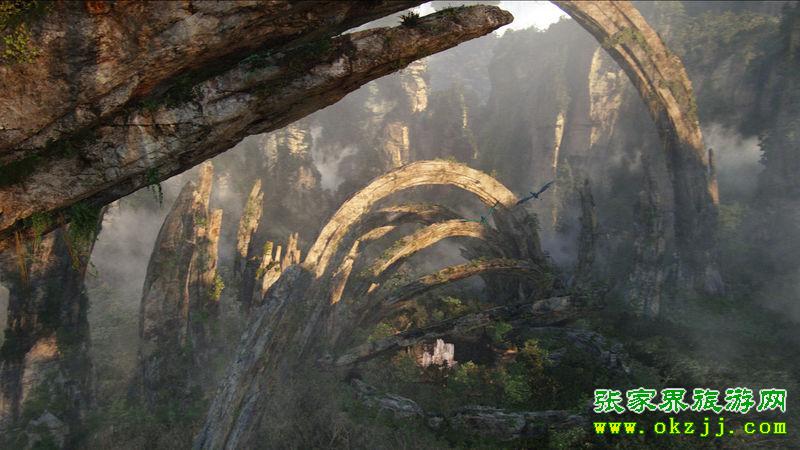 巍巍群山漂浮在天空,云霧繚繞,美麗壯觀……這是電影《阿凡達(dá)》中的經(jīng)典場(chǎng)景。阿凡達(dá)的全球熱映使人們對(duì)這部電影充滿(mǎn)了驚嘆和好奇,而這部影片奇幻的拍攝地到底是在哪里這一問(wèn)題也引發(fā)了影片熱愛(ài)者的紛紛推測(cè)。導(dǎo)演卡梅隆的一句“中國(guó)元素給《阿凡達(dá)》大大增色”不僅勾起了旅游愛(ài)好者的向往之心,更是引發(fā)了一場(chǎng)不小的爭(zhēng)論。片中美輪美奐的“哈利路亞山”讓人驚嘆向往,現(xiàn)實(shí)版的“哈利路亞山”到底是以黃山還是張家界的武陵源為背景,成了網(wǎng)友和旅游界的熱議焦點(diǎn)。“第42秒出現(xiàn)過(guò)張家界的南天一柱,第33分21秒出現(xiàn)過(guò)黃石寨的玉屏峰,第55分53秒出現(xiàn)過(guò)寶峰湖的瀑布……”在網(wǎng)上,有發(fā)帖者將這些在《阿凡達(dá)》影片中出現(xiàn)過(guò)的張家界景致一一羅列。通過(guò)慢放發(fā)現(xiàn),影片中大概有25分鐘完全是張家界的山水風(fēng)光。出現(xiàn)多次的是黃石寨前山的南天一柱,金鞭溪的劈山救母出現(xiàn)不低于5次,然而出現(xiàn)最多的還是寶峰湖瀑布和袁家界迷魂臺(tái)里面的擎天柱。而張家界和黃山的最大區(qū)別是黃山是花崗巖地貌,上面非常光滑,幾乎沒(méi)有植被,而張家界是石英砂巖地貌,上面植被覆蓋非常茂盛。