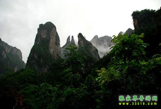 七星山介于天門、熊壁山、崇山三山之間,四座山均為四面刀載絕壁試絕壁,海拔也均在1500米以上,構成了中國版土中最為大氣壯觀的呈垂直角度的孤峰地貌群落。而七星山為其最高最大者。
