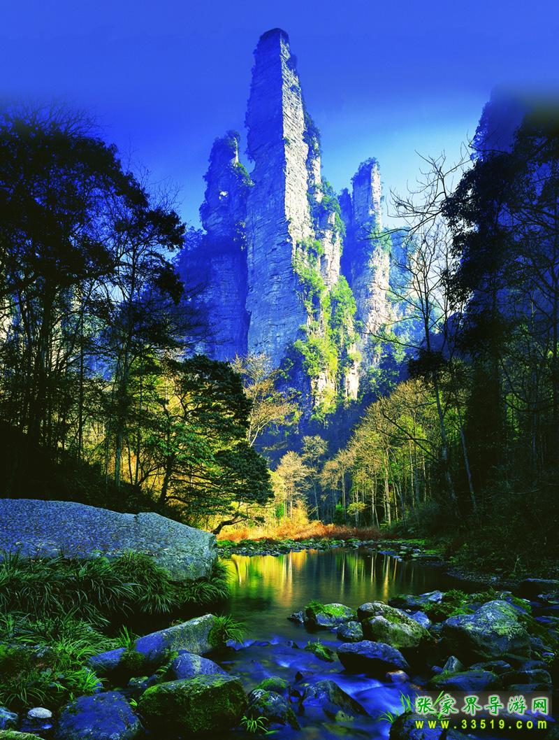 “峰三千,水八百”。這里有三千多座奇峰拔地而起,形態(tài)各異,似人似物,神形兼?zhèn)?,令人嘆為觀止。溪流、泉水、飛瀑散布其間,森林茂密,花草遍地。張家界宛如一幅巨大的山水畫。