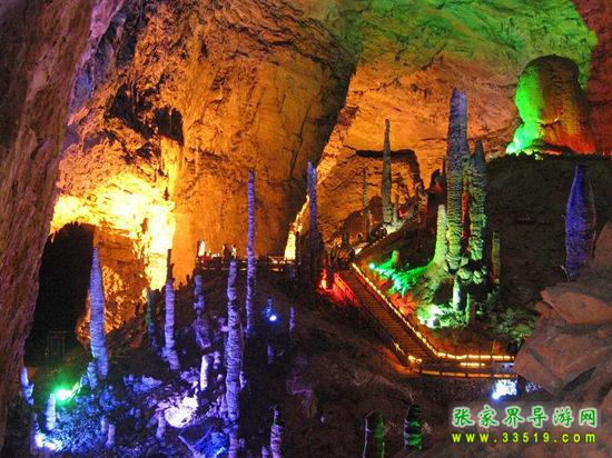 在張家界汽車站(火車站旁)乘開往武陵源中巴,到武陵源鎮(zhèn)下,乘3路公交車到終點(diǎn)站黃龍洞下,下車后還得再步行15分鐘才能到達(dá)洞口。