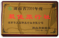 我們是您的最佳選擇! 值得信賴。 另: 1、2009年經(jīng)省旅游局和省世博辦推薦,華天國(guó)旅成為上海世博會(huì)團(tuán)隊(duì)票合作銷售“湖南省唯一指定旅行社”。 2、最新評(píng)定:華天國(guó)旅為 湖南五大地接社之一 (2010年4月22日) 3、最新評(píng)定:華天國(guó)旅為:湖南五星級(jí)旅行社 (2010年5月10日)