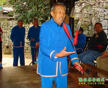三棒鼓,唐代稱三仗鼓,約于明代傳入張家界,并逐漸成為群眾喜聞樂見的民間藝術(shù)形式。每年春節(jié),藝人們結(jié)伴走村串寨拜年,表現(xiàn)對象不分貧富,戶戶必到。如遇貧寒之家,表演者將別家贈送的禮品相送,意在人人過節(jié)歡喜。充分體現(xiàn)出土家人熱情好客,心地善良的民族性格。對加強民族間團結(jié)有一定的作用。三棒鼓 通常由三至五人組成,一人擊鼓唱詞,一人鑼鼓配樂,一人?;ò簟;ò羧?,長一尺,舞者左右 各執(zhí)一根,將另一根拋在空中,左右開弓,擊打空中花棒使之不落地。也有以刀代棒,以五刀代三棒的技藝。鋼刀在空中歡跳,銀光閃閃,左右穿梭。技藝高強者,突然把刀拋得及高,來一個騰空飛腳,轉(zhuǎn)身外擺,繼續(xù)接刀上拋,令人眼花繚亂,不禁稱絕。打三棒鼓,通常有“鬧春耕”、“收割打場”、“慶豐收”、“拜年節(jié)”四套,分“鯉魚跳龍門”、“玉女穿梭”、“板巖漂灘”等項目。打三棒鼓技巧性強,表演時需高度集中,用力適當,貫通一氣,并與演唱者默契配合。