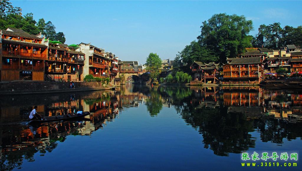 坐上烏蓬船,聽著艄公的號子,看著鳳凰古城兩岸已有百年歷史的土家吊腳樓,別有一番韻味;順?biāo)?,穿過虹橋一幅江南水鄉(xiāng)的畫卷便展現(xiàn)于眼前:萬壽宮、萬名塔、奪翠樓...