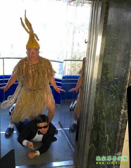 2012年10月31日,張家界市旅游局副局長、正處級調(diào)研員鄭亞平在張家界版《江南style》MV中客串“稻草鳥叔”,在劇中表演得入木三分。這位身著稻草的長者跨在一位年輕“帥哥”身上跳舞,動作之滑稽,表情之搞笑,可謂“史上最鳥的旅游官員”。鄭亞平坦言:“我年近60,在退休之前為張家界的旅游發(fā)展多奉獻自己,退休后我才不會遺憾!”