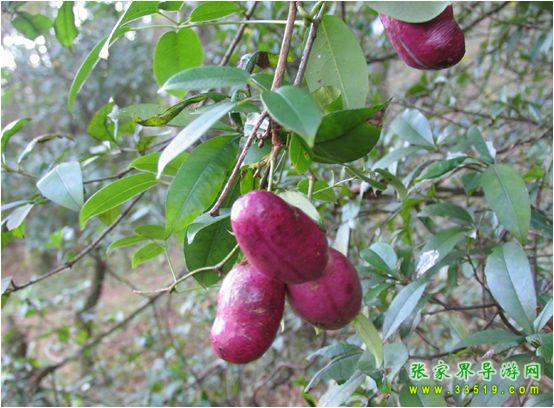 八月瓜又名八月炸,木通和三葉木通的果實(shí),野生果品。因八月果熟開(kāi)裂而得名。果形似香蕉,富含糖、維生素C和12種氨基酸,以及人體不能合成的纈基酸、蛋氨酸、異亮氨酸、苯丙氨酸、賴(lài)氨酸等。果味香甜,為無(wú)污染的綠色食品,有“土香蕉”之稱(chēng)。以天子山景區(qū)居多。索溪峪、楊家界等山麓谷地、林緣灌木叢中野生資源豐富。為上乘野果,現(xiàn)被有關(guān)部門(mén)列為重點(diǎn)開(kāi)發(fā)項(xiàng)目。